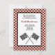 A fun invitation for any race car party. It features a red and white checked border. Two checkered flags sit on the bottom while the top is for your party information.
