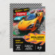 Bold and exciting race car design perfect for a high-energy birthday celebration. Bright colors, fast cars, and checkered flags set the scene for an unforgettable party.