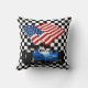Race Car with American Flag Throw Pillow
