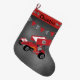 Personalize this stocking by adding a name to this sprint car racing stocking with checkered flags and chalkboard background.