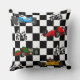 Race Cars Racing Flags and Checkered Pattern Throw Pillow