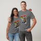 My 11 yo wore adult XL (5’7” 165#). The 8yo is small framed. She wore adult small and tied it in the back. Grandma wore adult large with long sleeve shirt underneath. Tall girl adult medium. Dark haired male adult large. Good quality dark Heather gray, Gildan brand shirt. -it was next up from basic choice and cost about $20 per shirt. Not too thick or thin. Washed and dried well, no major shrinkage. Not see-through. Can wear a bra under it fine. Screen print is just as shown and well done, front and back.