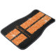 Bright orange faux glitter sparkly bling effect racing stripe or retro tire tread design on custom personalized interior car floor mats with a feminine script name (or any custom text), on a black editable color background, the perfect interior car decor for any automobile racing fan enthusiast, or as a funny joke gift for a crazy speeder or brand new drivers license.