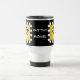 Enjoy your coffee or favorite beverage from this black travel mug to show your love of racing while driving to work or other locations. This travel mug is personalized with a name and the words Race Time and can be customized easily with other words, or a driver's number. This coffee mug makes a great gift for someone who loves racing or has won a race, auto, motor, dirt, track, motorbike or other bike racing. A waving black and white checkered flag is centered on a textured yellow background. A black and white checkered border surrounds the art. This image is on both side of the mug and on a black mug background with the customizable words in the center between the art images. This original race art is by Phyllis Dobbs.
