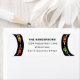 Colorful race car theme birthday party address label with cars racing on a black circular track. Your address is positioned in between two race tracks.