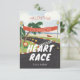 Video game inspired race track illustration with a personalized banner at the finish line, gold coins, banana peels, and racing ramps all in a beachside setting.