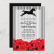 Derby themed bridal shower invitations feature black and white stripes, red roses and a race horse silhouette. All fonts, text, text colors, sizes can be modified, just click the PERSONALIZE button and Customize further link. MATCHING items in our store.