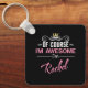 Of Course I'm Awesome I'm Rachel - in mixed white and pretty salmon pink casual and decorative cursive font lettering with whimsical scroll accents and topped with a golden crown.