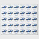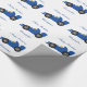 Birthday gift wrapping paper racing car design. You can customise this wrapping paper with any text of your choice. Should you require any help with customising then contact us through the link on this page. Blue racing car design birthday present wrapping paper