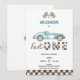 Celebrate your little speedsters big day with this racing car first birthday invitation! Featuring checkered flags, a vintage blue race car, and bold "Fast ONE- lettering, this design perfectly captures the thrill of the racetrack. Ideal for boys birthday parties, it includes customizable event details and a playful racing theme that guests will love. A stylish checkered border completes the look, making it a standout choice for a memorable first birthday celebration.