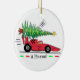 Celebrate Christmas with a 'Fir-rari!' - a bright red racing car carrying a fully decorated Christmas tree and a 'Merry Xmas' tag.