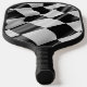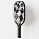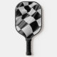 Pickleball paddle with image of black and white racing flags.