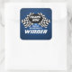Black and white racing flags sticker with a blue background. Thank you favor sticker for your racing themed birthday party.