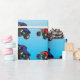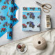 Monster truck birthday wrapping paper for with a red and blue truck on a sky blue background. Find similar designs on other birthday items at www.zazzle.co.uk/special_stationery