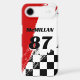 Racing Name Number Red Checkered Black and White Case-Mate iPhone Case