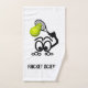 A funny tennis player graphic by artist/designer Charmaine Paulson on a hand towel.