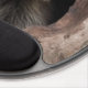 The plastic backing is nice and sturdy. The grippy pads underneath keep the mouse pad where I put it on my table. The pad the mouse sits on is cut well to fit the backing. The wrist pad is perfectly soft, supportive, and thick. I'm left-handed, and this mouse pad works just as well for me as it does for my right-handed friends. I'm the designer of HippieClecticHope products. I'm blown away by how well my intricate fractals turn out on the tangible items in the Zazzle Marketplace. This particular mouse pad ***appears*** like a 3D object... A mathematically-engineered rainbow black opal, inlaid under transparent fabric...