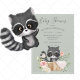 Racoon Watercolor Sage Baby Shower Invitation