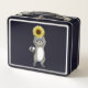 This is a standard metal lunchbox that appears to work just fine. We designed this box ourselves with an uploaded photo and custom text on the front and back. It looks absolutely beautiful except the front of the lunchbox is not centered like it shows in the photo. The print borders don't align with the inset flat part of the box where the preview photo online showed it perfectly centered in there. The back looks nice and centered though.