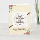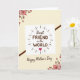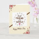 This card features a slightly tilted white square centered on a soft, creamy yellow background, setting a gentle scene of care and closeness ❤️. Inside the square, the phrase “Best FRIEND in the WORLD” sits prominently in dark lettering, with “FRIEND” emphasized in all caps. Around the square, short radiating lines and tiny dots form a sunburst that feels like warm attention focused on someone special. Just below the square, “Happy Mother’s Day” appears in a flowing, cursive-style line in a darker tone, neatly aligned under the main message. Pink blossoms with simple outlines cluster at the upper-left corner and rise again from the lower-right, like two friends reaching toward each other across the page 🌼. Thin diagonal lines in a warm brown cross the background, adding a soft sense of movement without crowding the layout. A bright fuchsia heart sits tucked under the word “WORLD” near the bottom of the white square.