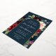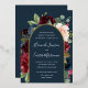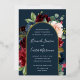Our Radiant Bloom wedding invitation surrounds your wedding day details with an arch of painted watercolor flowers in burgundy marsala, blush pink and navy blue, with green botanical foliage and eucalyptus leaves. A beautiful choice in lush, saturated colors for fall or winter weddings, with luxe gold foil trim.