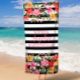 Introducing the Radiant Bloom Floral Personalized Beach Towel! This beautiful, unique towel is perfect for your next beach trip. The elegant floral design is accented with your personalized name, making it a truly one-of-a-kind statement piece. The soft, absorbent material is perfect for relaxing on the sand or by the pool. The trendy blush pink and black stripes colors are perfect for any summer event. Whether you're lounging by the beach or pool, or enjoying a day in the sun, this towel is a must-have.