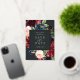 Our Radiant Bloom wedding save the date frames your wedding details with an elegant square border of lush watercolor foliage and flowers in blush pink, burgundy plum and dusty blue, with real gold foil trim on a rich charcoal background.