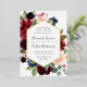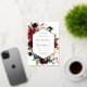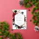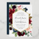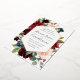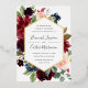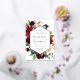 Our Radiant Bloom wedding invitation surrounds your wedding day details with a geometric frame of painted watercolor flowers in burgundy marsala, blush pink and navy blue, with green botanical foliage and eucalyptus leaves. A beautiful choice in lush, saturated colors for fall or winter weddings, with elegant gold foil trim to complete the look.