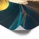 The image showcases an abstract floral design with a vibrant color palette. The artwork features layered, petal-like shapes in shades of yellow, orange, white, and turquoise. These translucent forms create a sense of depth and movement, resembling stylized flowers. The background is dark, which makes the colors pop.