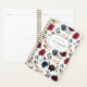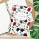Chic floral personalized planner features a background pattern of watercolor flowers in rich burgundy marsala, blush pink and navy blue, with lush green foliage and eucalyptus leaves. Personalize with three lines of custom text.