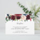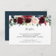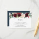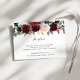 Designed to coordinate with our Radiant Bloom wedding collection, this elegant botanical reception enclosure card features a spray of burgundy marsala, blush pink and navy blue flowers with green eucalyptus foliage, topping your wedding reception details, venue and timing.