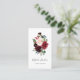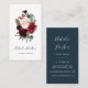 Elegant vertical business cards for florists, floral designers or event planning professionals feature a vibrant jewel tone bouquet of burgundy marsala and blush pink watercolor flowers with green eucalyptus foliage and navy blue buds. Personalize with your name and/or business name beneath, and add your contact information to the reverse side in white on a rich navy blue background