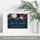 Designed to match our Radiant Bloom wedding collection, this elegant watercolor floral sign welcomes guests to your dessert table or candy bar. Personalize with two lines of custom text in calligraphy and block lettering (shown with "Love is sweet, please take a treat"), framed by lush jewel toned flowers and green botanical foliage on a rich navy blue background.