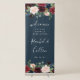 Welcome guests to your wedding or any event with this eyecatching retractable banner featuring jewel tone watercolor flowers and eucalyptus foliage with your custom wording in white handwritten style script and block lettering on a navy blue background. Designed to coordinate with our Radiant Bloom event collection.