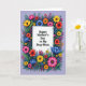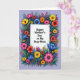 Designed with a lively floral border, this card centers a white rectangular panel that draws your eyes straight to the message. The main text sits in the middle of that panel in black lettering, with plenty of breathing room around it for a calm, affectionate feel ❤️. Around the panel, a dense ring of stylized blossoms and foliage leans inward like a friendly embrace, suggesting closeness and care. Flowers in fuchsia, sunny yellow, orange, deep blue, and red are outlined in black with light shading that gives them a softly painted look. Green leaves weave between the blooms, and small clusters of pink and orange berries tuck into the gaps like little shared secrets 🌼. The background is a gentle lavender tone that makes the bright petals stand out without feeling harsh. Tiny starburst sparkles are scattered among the leaves and flowers, glowing against the lavender backdrop.