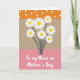 This card shows a gentle celebration built around a bouquet of seven white flowers with sunny yellow centers, their slim dark stems gathering together like close friends leaning in ❤️. The background is divided into three horizontal sections that keep the layout calm and easy to take in. Across the top, a bright orange band is sprinkled with small white polka dots, adding a light, friendly energy. Beneath that, a wide muted beige area gives the flowers room to stand out, with the petals fanning outward in a soft, open gesture. The lower section shifts to a pale pink panel where a short message sits, written in white lettering that feels casual and welcoming. The contrast between the white text and pink base makes the words easy to spot, like a quiet note left for someone special 🌼. The overall color mix—orange, beige, and pink—frames the bouquet so the blooms feel like they’re being offered with a tender, affectionate touch. The message is placed in the bottom pink band, centered beneath the stems, while the orange top band with white dots caps the design.