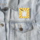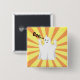 Radiant cute Trumpy ghost button. This lovely ghost is on orange and yellow rays background.