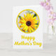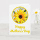 This card features a large sunlit flower near the top of a bright white background, framed inside a thick yellow circle that feels like a warm hug ❤️. Long golden petals spread outward from a dark brown, textured center, and the gentle lighting gives the petals a soft, velvety look. Inside the circle, a faint, slightly blurred mix of leafy greens and soft whites hints at an outdoor garden scene. The bright yellow tones create a friendly, affectionate mood, like a quiet moment of appreciation shared between loved ones. Centered below the circle, the words “Happy Mother’s Day” appear in smooth, flowing lettering. The text is colored the same sunny yellow as the circular frame, tying the design together with a cheerful glow 🌼. The flower sits in the upper section while the message rests beneath it, leaving plenty of open white space around both.