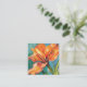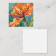 This notecard presents a stunningly vibrant depiction of an orange flower in full bloom. The energetic brush strokes and bright, lively colors capture the essence of vitality and growth. Set against a contrasting green background, this artwork is a celebration of nature's vivid color palette and dynamic life force. Perfect for any occasion, it will surely brighten the day of anyone who receives it.