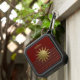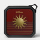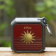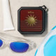 An artistic sun symbol in gold placed against a deep red textured background with elegant golden lines. A perfect fit for statement phone cases and warm home decor pieces.