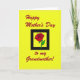 This card features a bright yellow background that feels like sunshine, with a deep red “Happy Mother’s Day” message placed across the top in flowing, calligraphy-style lettering. A thin outline around the letters helps the words stand out, giving them a soft depth against the yellow. Centered on the page is a solid black square frame that draws your eyes inward, like a little window holding something special ❤️. Inside the frame sits a stylized red rose with layered petals that curl toward each other, suggesting a tender, affectionate gesture. A green stem with two simple leaves adds a fresh contrast and makes the flower feel gently grounded. Beneath the framed rose, the phrase “to my Grandmother!” appears in matching deep red lettering, centered near the bottom for a balanced look 🌼. The overall layout is symmetrical, with the top and bottom text echoing each other around the black square and the single red rose. The rose’s petals are outlined clearly, and the black frame sits sharply against the yellow field.