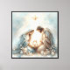 This serene Holy Family nativity design centers on a radiant newborn beneath a brilliant guiding star, surrounded by gentle celestial glow and soft watercolor light that evokes reverence and peaceful Christmas wonder. Mary and Joseph lean close in quiet devotion, their flowing robes painted in calming pastel blues and warm neutrals that create a tender, intimate moment of sacred stillness. Delicate shimmering accents, soft foliage, and luminous orbs frame the scene, blending traditional Christian symbolism with an elegant, modern watercolor style that feels timeless yet fresh for today’s seasonal décor trends. Ideal for anyone drawn to faith-filled imagery, tranquil holiday themes, or softly glowing devotional illustrations that celebrate the beauty of Christ’s birth, this design brings a warm sense of hope and holy night reflection. AI generated artwork.