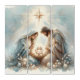 This serene Holy Family nativity design centers on a radiant newborn beneath a brilliant guiding star, surrounded by gentle celestial glow and soft watercolor light that evokes reverence and peaceful Christmas wonder. Mary and Joseph lean close in quiet devotion, their flowing robes painted in calming pastel blues and warm neutrals that create a tender, intimate moment of sacred stillness. Delicate shimmering accents, soft foliage, and luminous orbs frame the scene, blending traditional Christian symbolism with an elegant, modern watercolor style that feels timeless yet fresh for today’s seasonal décor trends. Ideal for anyone drawn to faith-filled imagery, tranquil holiday themes, or softly glowing devotional illustrations that celebrate the beauty of Christ’s birth, this design brings a warm sense of hope and holy night reflection. AI generated artwork.