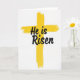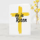 This greeting card features a bright yellow cross-like shape centered on a white background, built from loose, brushy strokes that leave uneven edges and natural paint texture. The warm yellow form feels like a sunny gesture shared between close friends, with the open space around it giving the design room to breathe 🌷. Across the middle, a short phrase sits directly on top of the yellow shape in textured black lettering, placed squarely in the center for easy reading. The dark text contrasts strongly with the yellow, like a steady, confident note offered with a gentle, caring glance 🐰. Subtle variations in the yellow paint density and stroke direction add movement, as if the mark was made in one earnest pass. The palette stays simple—white, yellow, and black—so your eyes go straight to the central symbol and the message. The black words run horizontally across the brightest part of the yellow shape, with the brushstroke texture still visible around the letters.