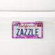 A license plate features bold “California” script and clean lettering framed by a colorful geometric pattern in pink, purple, and blue tones. The crisp typography and vibrant border create a modern, eye-catching composition that feels energetic, sleek, and visually distinctive.