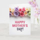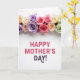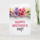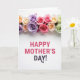 Designed with a wide white background, the card features a horizontal band of fully open roses stretching across the top like a gentle floral crown ❤️. The blooms mix soft lavender, creamy yellow, tender peach, bright pink, and muted sage green, with layered petals that look velvety and softly lit. The light feels diffused and calm, giving the flowers a cozy glow that suggests a caring, close bond. Beneath the flowers, the message sits centered in the open space, leaving plenty of breathing room around it. “HAPPY MOTHER’S” appears first in bright fuchsia pink, drawing the eye with a cheerful, affectionate tone. Just below it, “DAY!” is set in a deeper plum color, and the last mark has a small decorative curl that adds a sweet, friendly touch 🌼. The top floral band is dense and colorful, while the lower area stays mostly white so the pink and plum lettering stands out clearly.