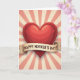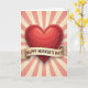 This greeting card features a large red heart at the center, shaded with soft highlights so it looks glossy and gently rounded, like a warm hug ❤️. Behind it, alternating rays of coral-pink and creamy beige spread outward in a sunburst pattern that feels cheerful and welcoming. A parchment-toned banner wraps across the lower part of the heart, with folds and shadows that make it look lightly curled at the ends. The message “HAPPY MOTHER’S DAY!” sits centered on the banner in dark lettering that stands out clearly against the muted background. Tiny speckled flecks dot the backdrop like small stars, adding a sweet, affectionate sparkle 🌼. The mix of deep red and soft pastels gives the scene a tender, close-to-the-heart look, like a quiet moment of appreciation shared between loved ones. The heart remains the main focus, framed by the radiating stripes and the banner’s gentle curves. The banner crosses the heart’s lower half, with the dark text aligned straight across its middle and the sunburst rays continuing evenly behind it.