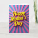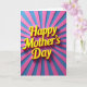 This card features the words “Happy Mother’s Day” in large, rounded yellow letters centered on the front, with a gentle 3D look created by soft shading and small shadows that make the message feel close and warm ❤️. The lettering curves slightly across the middle, giving it an easy, friendly flow without looking stiff. Behind the text, wide rays spread outward like a sunburst, suggesting an open-armed, caring moment the way a family hug might feel. The rays alternate between cool blue and bright pink, creating a lively contrast that makes the yellow message stand out. The background’s radiating lines add motion, as if the card is glowing with affection and a touch of sweet admiration. The text sits on top of the rays with clear spacing around it, so the eye goes straight to the greeting first, then wanders outward through the color bands 🌼. Alternating cerulean-blue and hot-pink rays fan out from behind the centered yellow message, filling the entire background edge to edge.