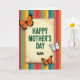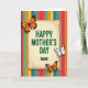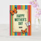 This greeting card features a cream-colored rectangular panel centered on the front, with softly worn edges that make it feel gently cherished. Across the panel, the words “HAPPY MOTHER’S DAY” sit in rich green letters, while “NAN” appears just beneath in black, flowing lettering for a close, affectionate touch ❤️. Behind it all, tall vertical stripes run from top to bottom in a rainbow sweep of reds, oranges, yellows, greens, and deep blues, like a bright backdrop wrapping her in warmth. Three butterflies flutter around the panel, adding a tender, caring mood through their light, drifting placement. Two orange butterflies with black outlines and small white spots hover near the upper left and lower right, like little notes of attention circling the message. A third butterfly in white with crisp black edging rests near the upper right, standing out calmly against the colorful stripes 🌼. Soft shadows under the panel and wings give a slight lifted look, with the striped background and butterflies filling the entire front.