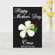 This greeting card features a deep black background with a large white five-petaled flower centered like a gentle spotlight, and it quietly suggests closeness with its soft shading and calm symmetry ❤️. The petals have light-to-dark gradients that give them a smooth, glowing depth against the dark field. At the base of the bloom, bright green shapes cradle a burst of orange stamens that flare outward like a warm little spark. Above the flower, the words “Happy Mother’s Day” appear in flowing white cursive near the top edge. Below the bloom, “Oma” is written in the same white cursive, followed by “With all of my Love” in slightly smaller white cursive, arranged in a neat stack that feels like a tender note tucked beneath a gift 🌼. The strong contrast between white lettering and the black background keeps the message easy to read while the orange center adds a cozy, affectionate glow. The flower’s center shows clustered orange lines and dots rising from a green base, framed by five rounded white petals.